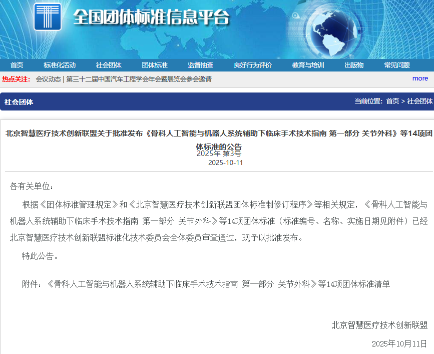 近日,北京智慧醫(yī)療技術創(chuàng)新聯(lián)盟批準發(fā)布14項團體標準,其中由合肥德銘電子有限公司、合肥德易電子有限公司參與起草的《智慧手術室全流程數(shù)字化管理技術規(guī)范》和《智慧病房數(shù)字化建設和運維管理規(guī)范》2項團體標準發(fā)布,并將于2025年12月31日正式實施。